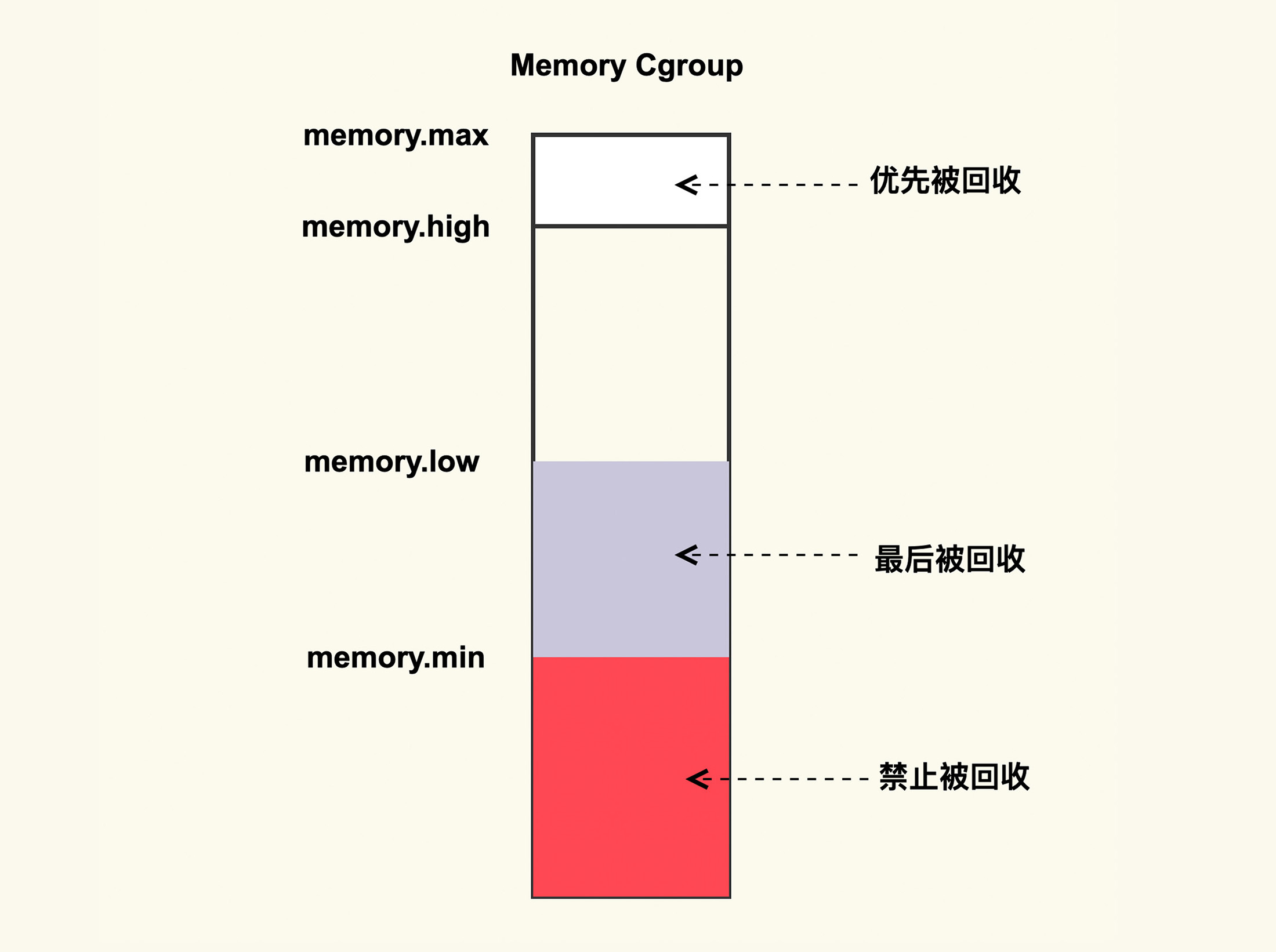如上图所示,memory cgroup提供了几个内存水位控制线memory.{min, low, high, max} 。