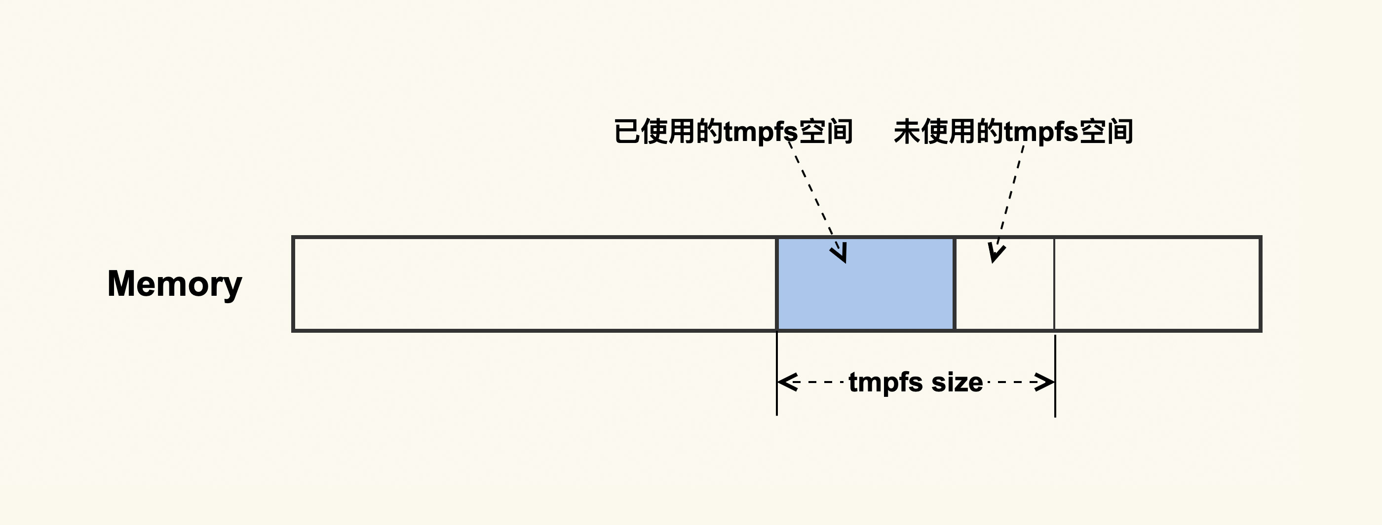 先说答案:这跟一种特殊的Shmem有关。我们知道,磁盘的速度是远远低于内存的,有些应用程序为了提升性能,会避免将一些无需持续化存储的数据写入到磁盘,而是把这部分临时数据写入到内存中,然后定期或者在不需要这部分数据时,清理掉这部分内容来释放出内存。在这种需求下,就产生了一种特殊的Shmem:tmpfs。tmpfs如下图所示: