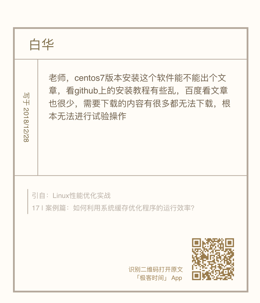 很多同学留言说用的是 CentOS 系统。虽然我在文章中也给出了一个参考文档,不过 bcc-tools 工具安装起来还是有些困难。