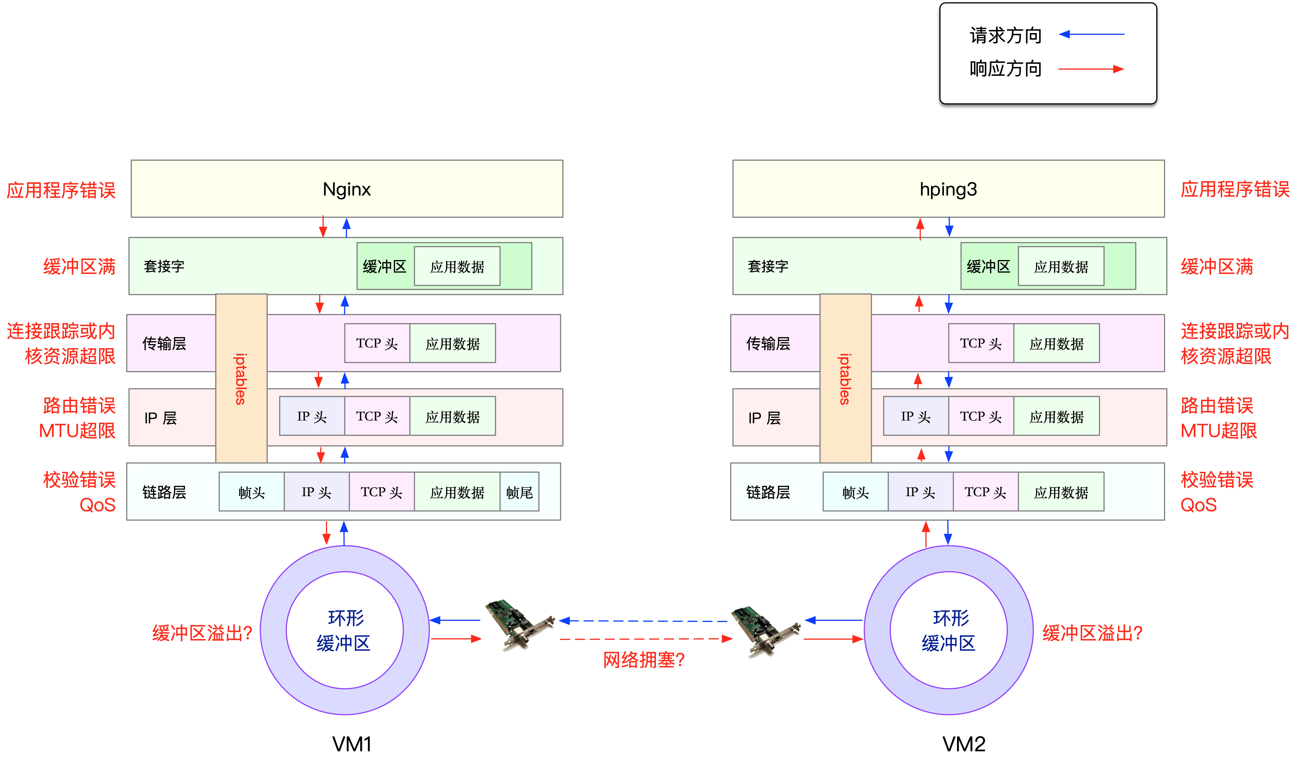 当然,上面这些问题,还有可能同时发生在通信的两台机器中。不过,由于我们没对 VM2 做任何修改,并且 VM2 也只运行了一个最简单的 hping3 命令,这儿不妨假设它是没有问题的。