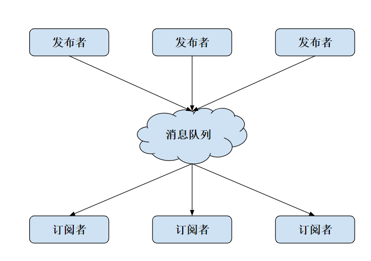 消息队列的模式是发布和订阅,一个或多个消息发布者可以发布消息,一个或多个消息接受者可以订阅消息。 从图中你可以看到,消息发布者和消息接受者之间没有直接耦合,其中,