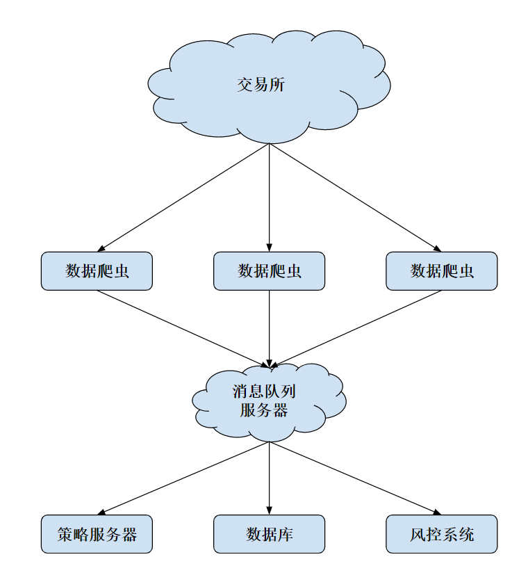 在大型量化交易公司,系统一般是分布式运行的,各个模块独立在不同的机器上,然后互相连接来实现。即使是个人的交易系统,在进行诸如高频套利等算法时,也需要将执行层布置在靠近交易所的机器节点上。