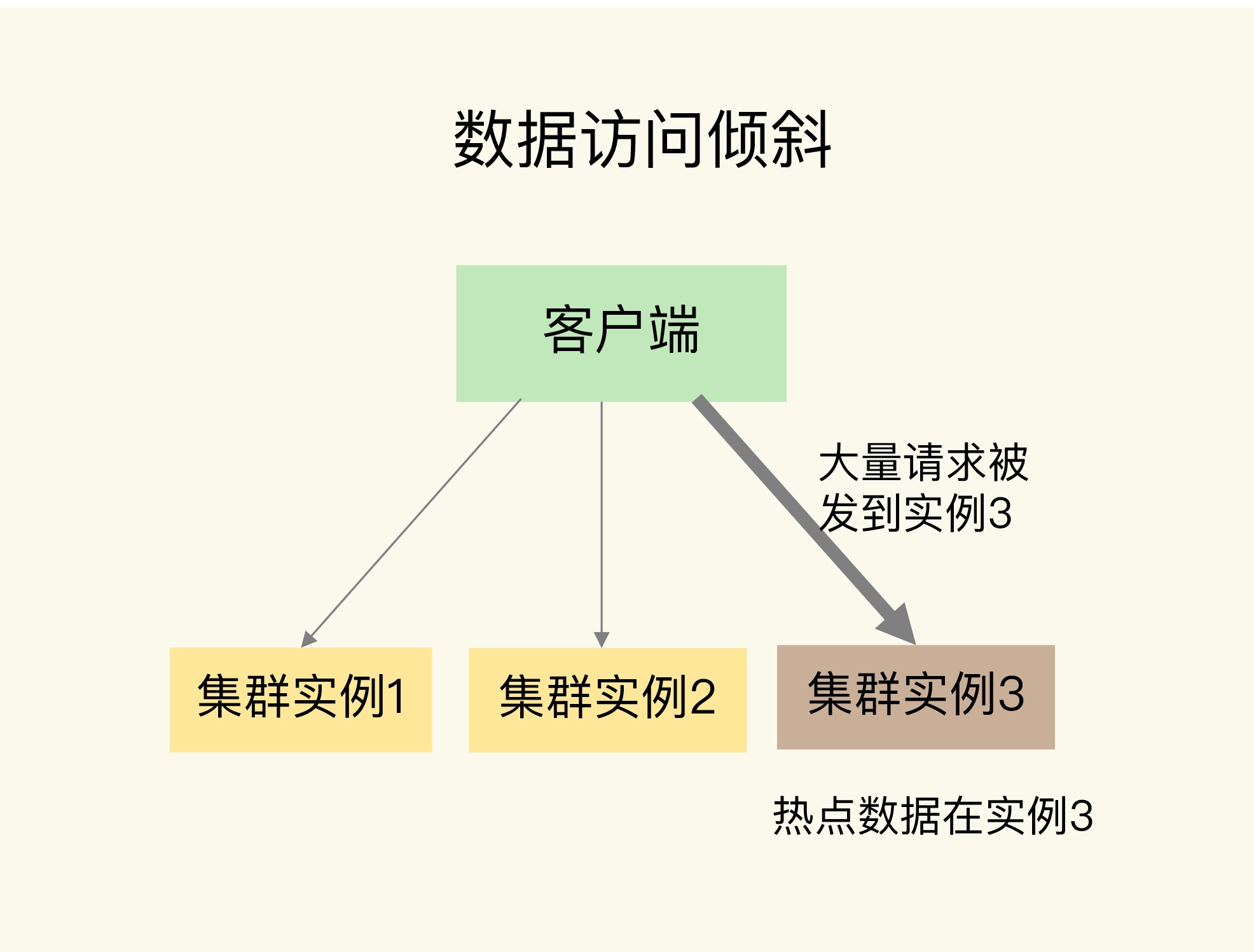 发生数据访问倾斜的根本原因,就是实例上存在热点数据(比如新闻应用中的热点新闻内容、电商促销活动中的热门商品信息,等等)。