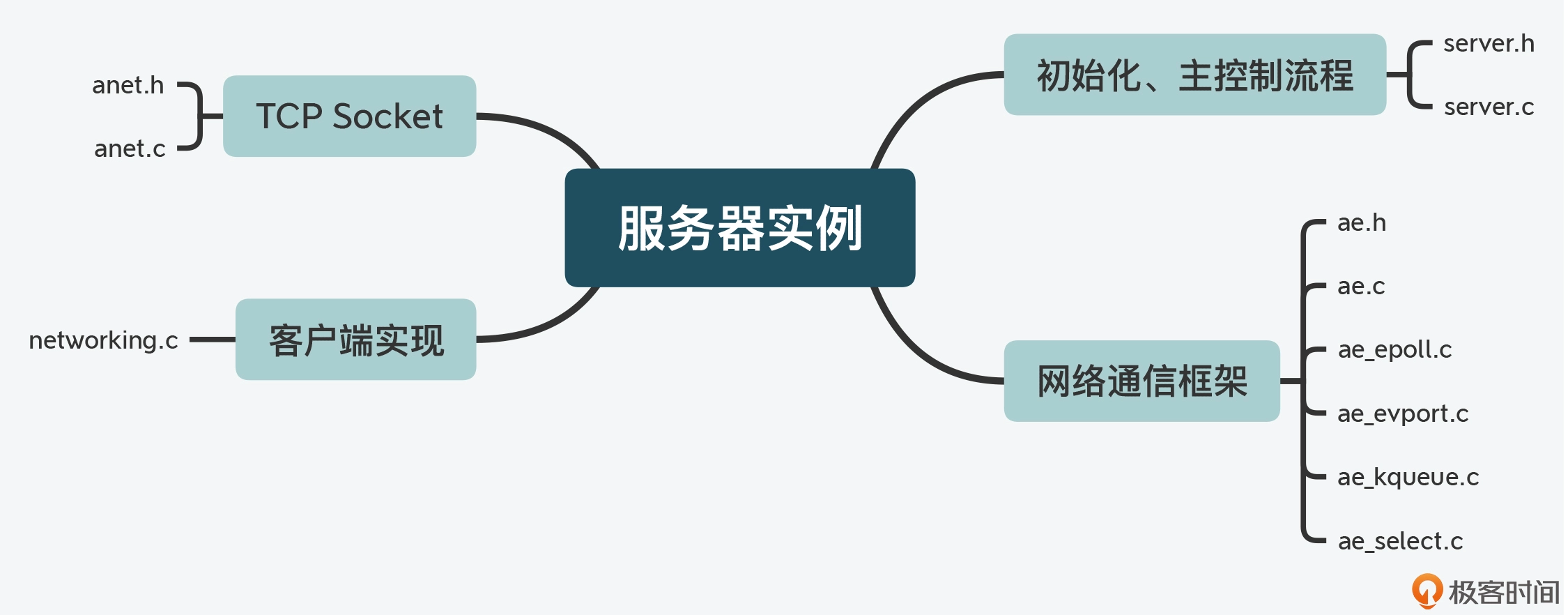 这里我也给你总结了与服务器实例相关的功能模块及对应的代码文件,你可以看下。