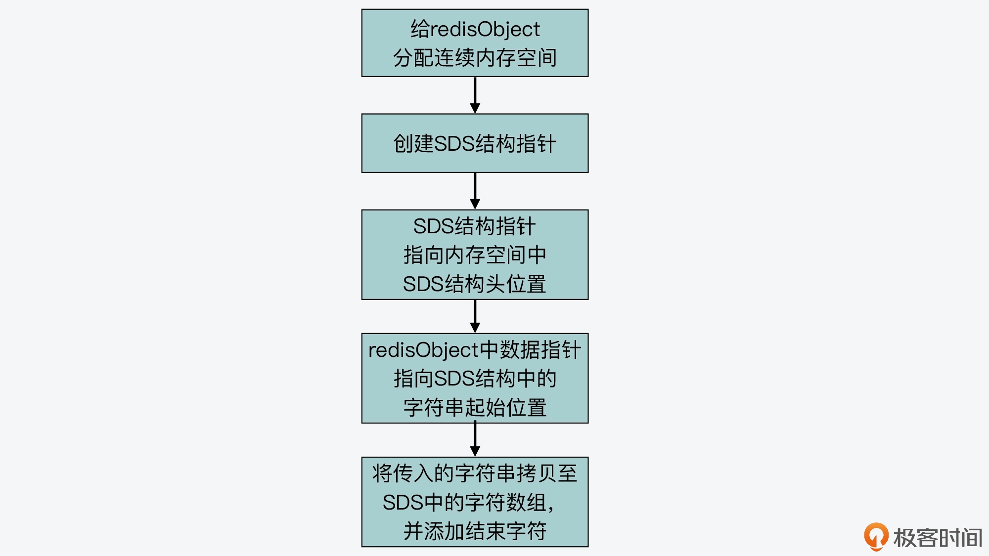 现在,我们就来分析一下 createStringObject 函数的源码实现,以此了解大于 44 字节的普通字符串和小于等于 44 字节的嵌入式字符串分别是如何创建的。