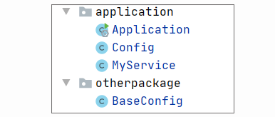 为了让程序启动,我们不能将 BaseConfig 和 Config 都放到 Application 的扫描范围。我们可以按如下结构组织代码: