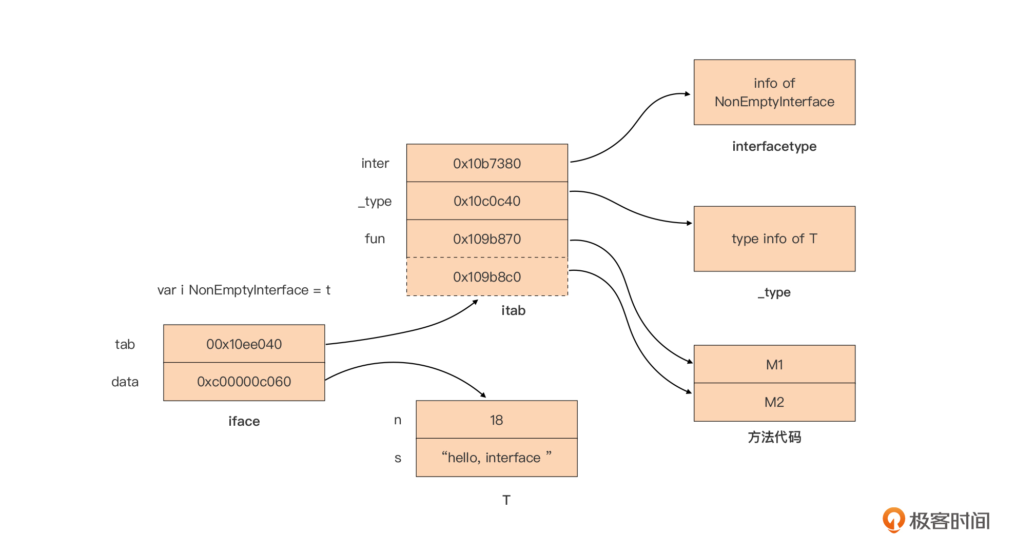 要想弄清楚这个问题,我们需要进一步了解接口类型变量的内部表示。