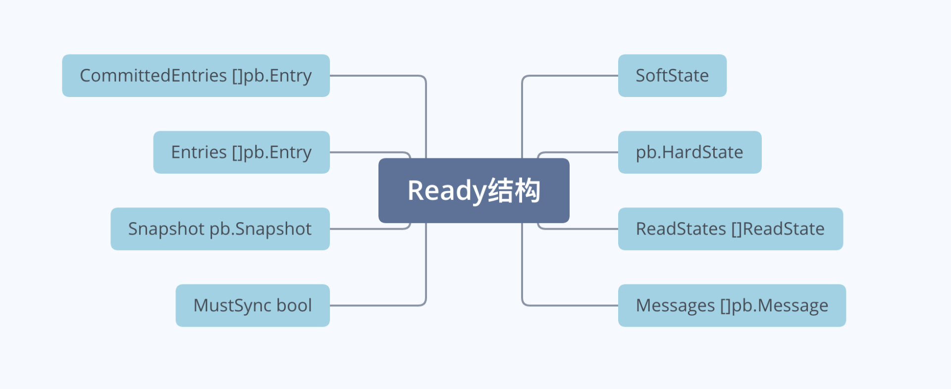 上面提到的Raft状态机的输出Ready结构含有哪些信息呢? 下图是其详细字段,含义如下: