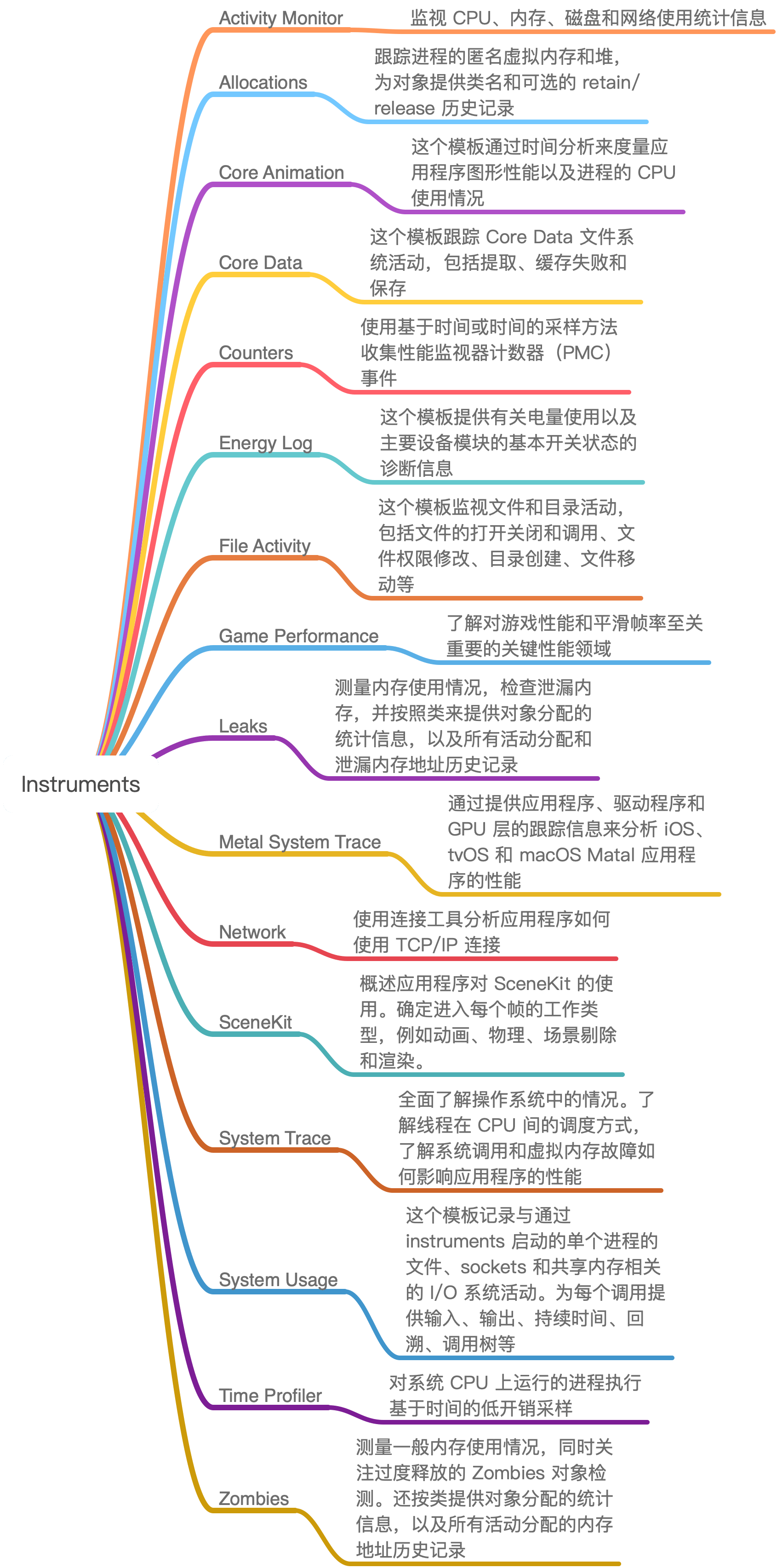 图1 Instruments 提供的各种性能检测工具