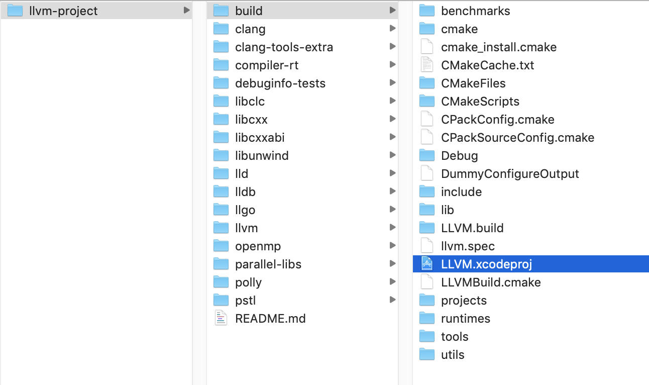 执行完后,会在 build 目录下生成 Xcode 工程,路径如下图: