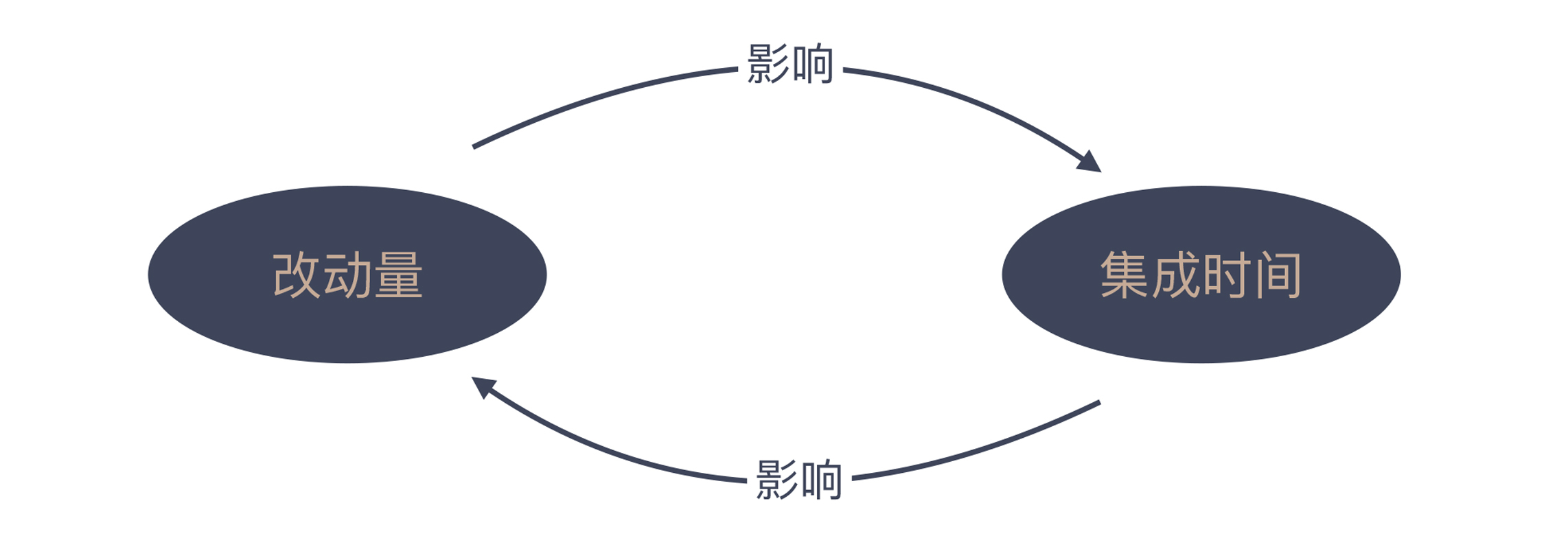 在很长一段时间内,集成都是软件行业的难题,改动量和集成时间互相影响。幸运的是,不同的人在不同的方向尝试着改变,结果,同时加大改动量和集成时间的人陷入了泥潭,而调小这两个参数的人看到了曙光。