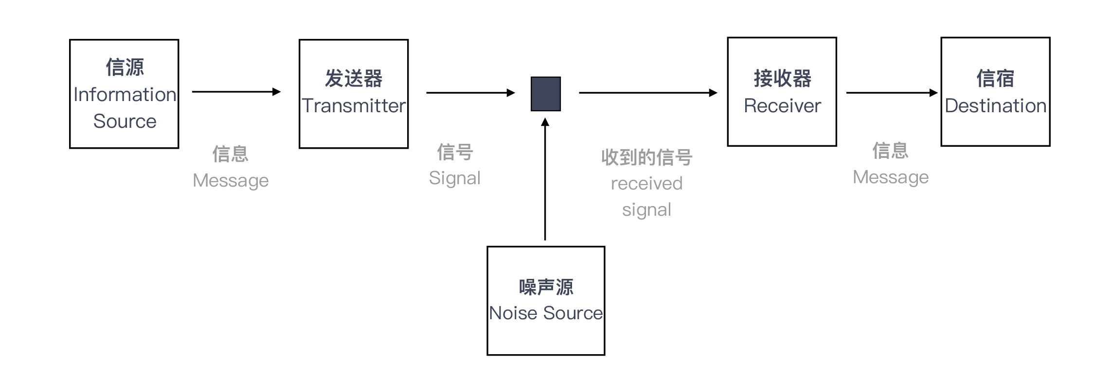 我们这里要借鉴的是香农信息论中的一个通信模型,如下图所示:
