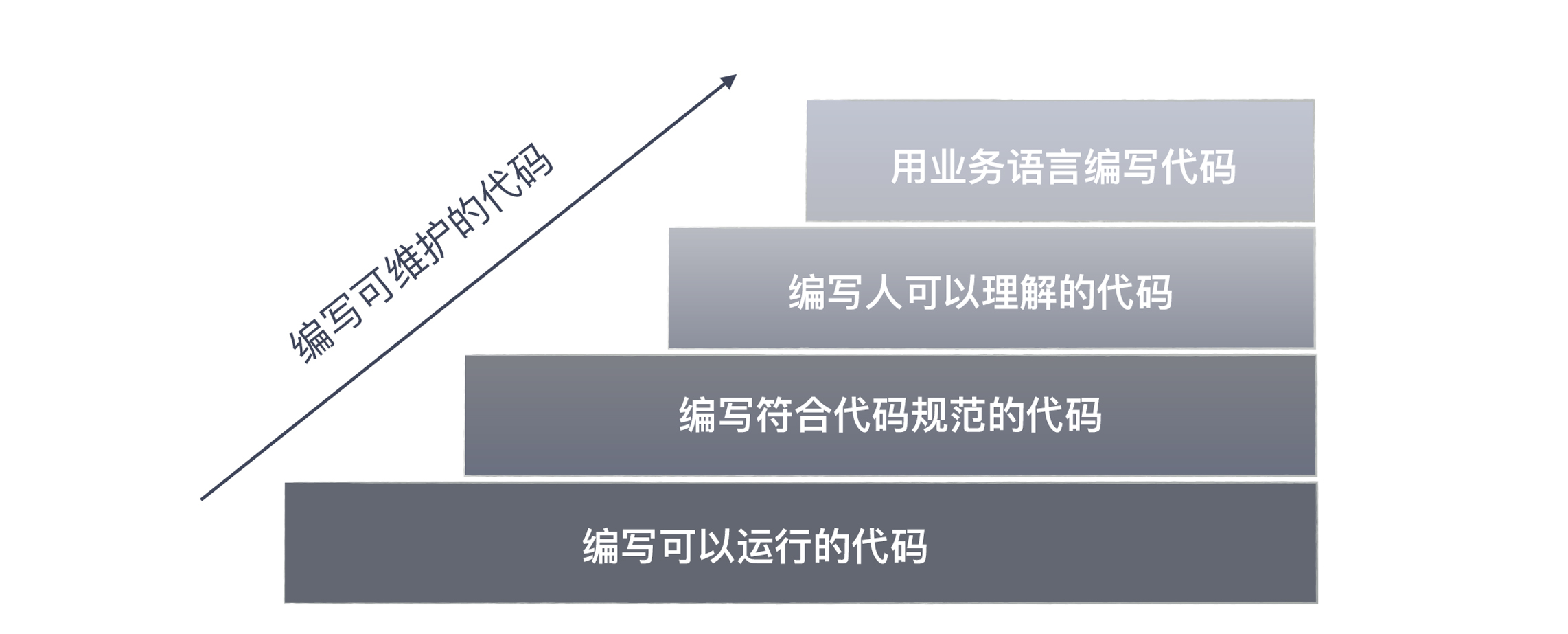 与人沟通,就要用与人沟通的方式和语言写代码。人和机器不同,人需要理解的不仅是语言规则,还需要将业务背景融入其中,因为人的目的不是执行代码,而是要理解,甚至扩展和维护这段代码。