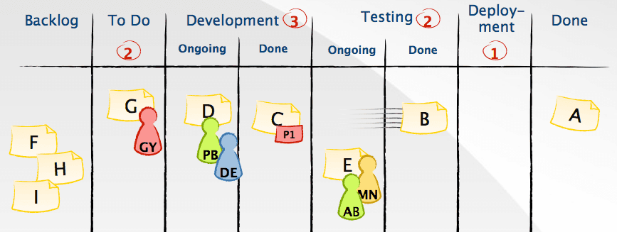 看板可以帮你发现许多问题,比如,当前进展是否合适,是否有人同时在做很多的事,发现当前工作的瓶颈等等。