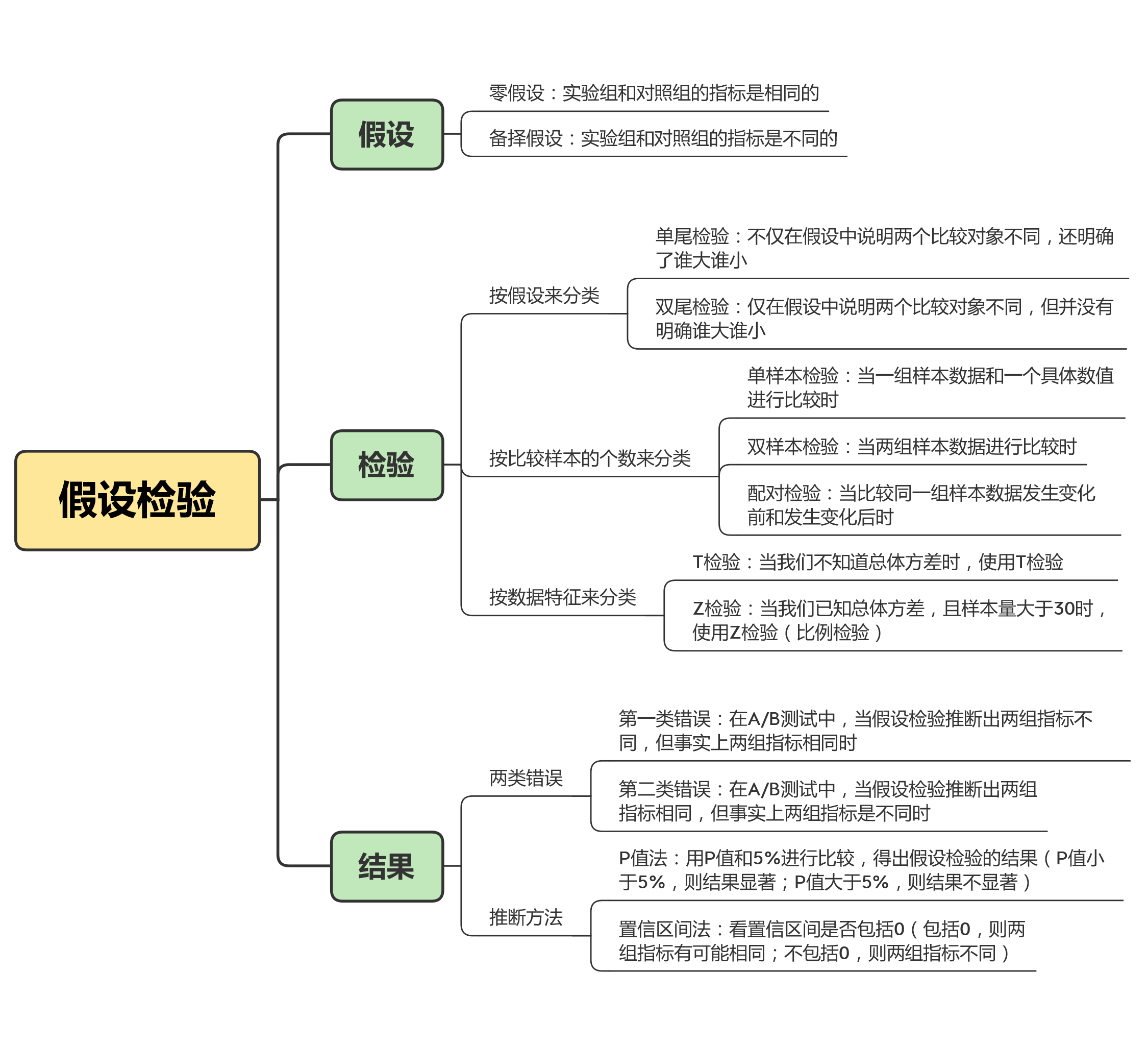 现在,我们知道了假设检验中的“假设”包括零假设和备择假设两种,那么“检验”都包括什么呢?