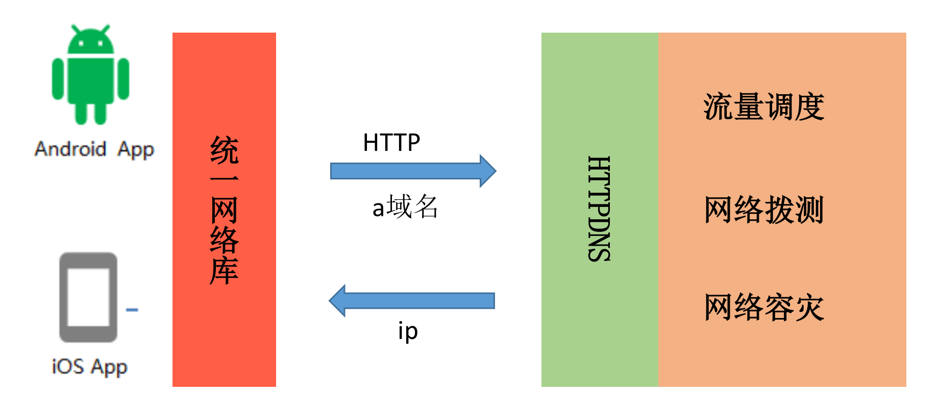 为了解决这些问题,就有了HTTPDNS。简单来说自己做域名解析的工作,通过HTTP请求后台去拿到域名对应的IP地址,直接解决上述所有问题。