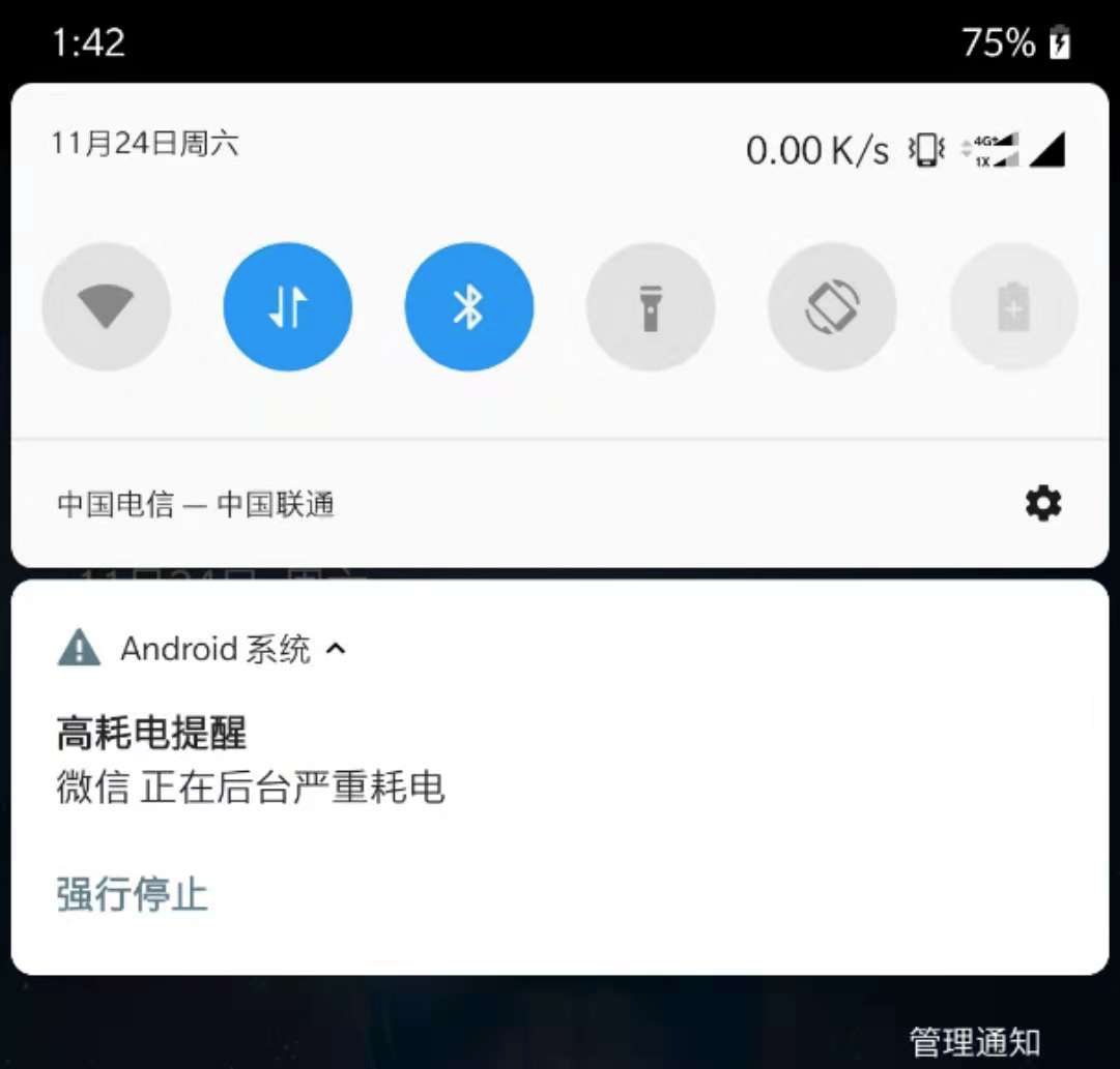我在Android 9.0刚出来的时候,正常使用了一天手机,在通知栏竟然弹出了下面这样一个提示:微信正在后台严重耗电。