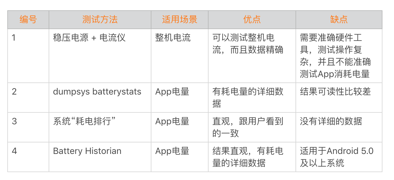 准确的测量电量并不是那么容易,在《大众点评App的短视频耗电量优化实战》一文中,为我们总结了下面几种电量测试的方法。
