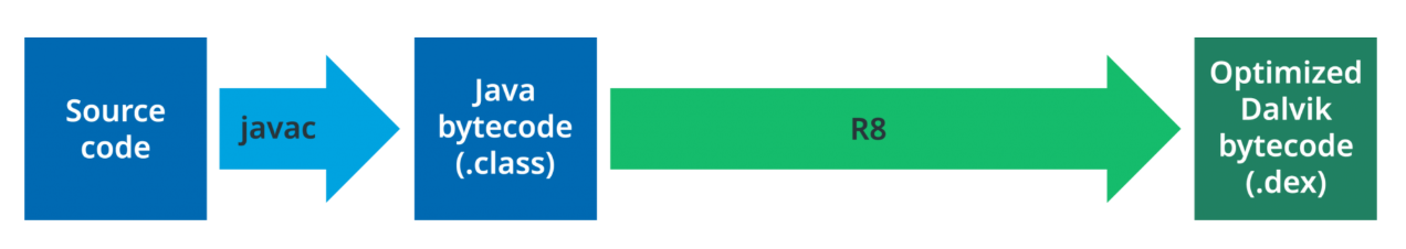 R8在Android Studio 3.1中引入,它的志向更加高远,它的目标是取代ProGuard和d8。我们可以直接使用R8把“.class”文件变成Dex。