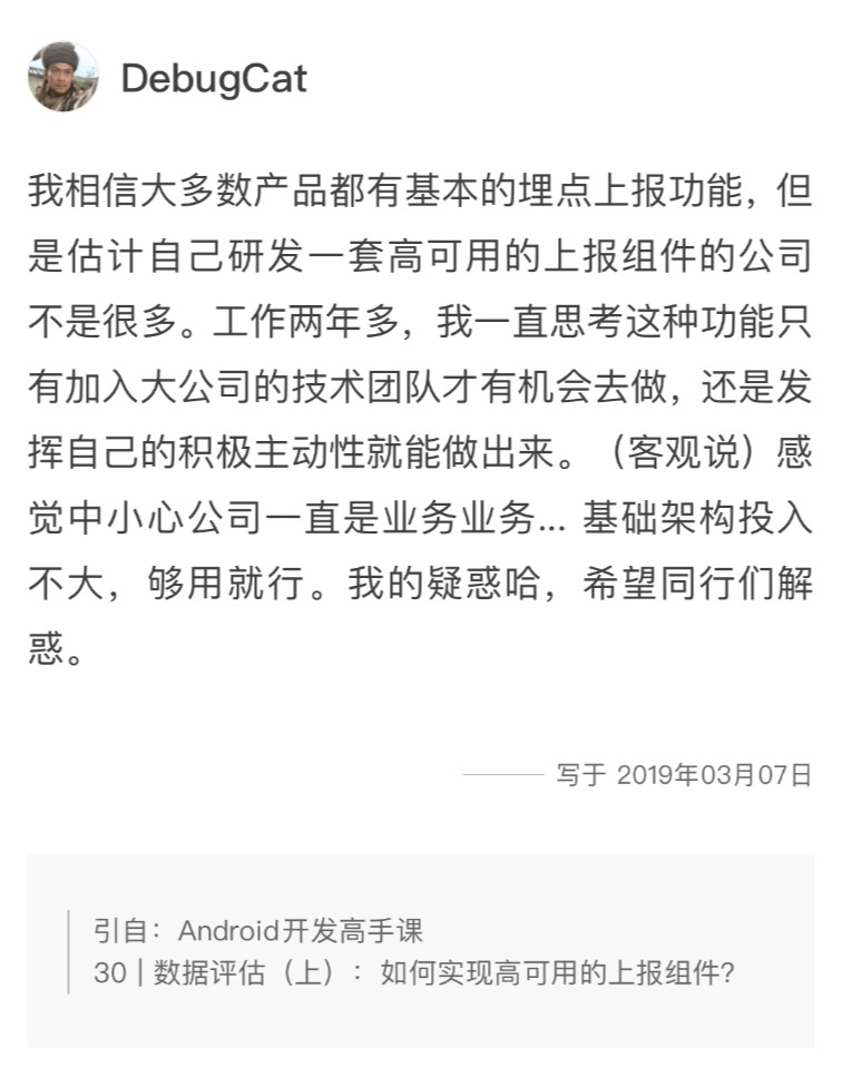 专栏更新至今,不知不觉第二模块“高效开发”也已经更新完了。稳定性、内存、卡顿、I/O、网络,“高质量开发”模块打通了从应用层、Android系统层、Linux内核层再到硬件层的优化路径,帮助我们打通“任督二脉”,成为一名Android开发高手。