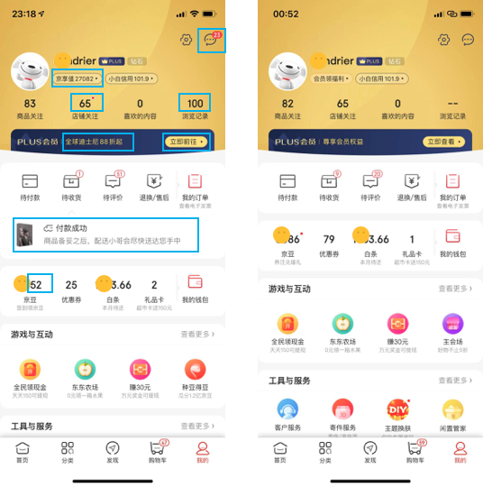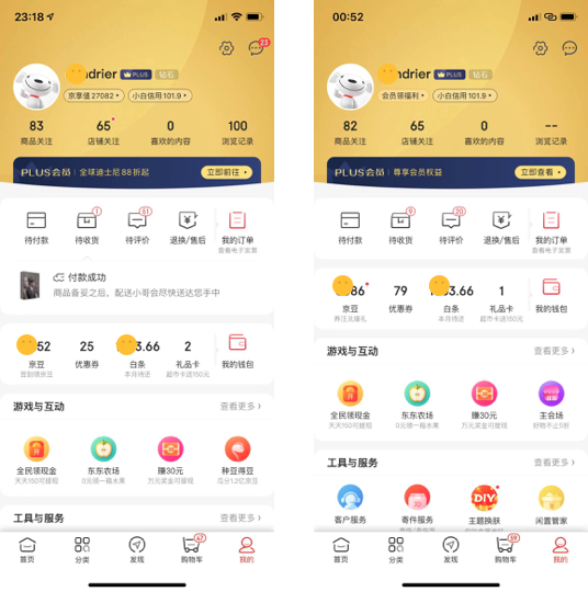 我给你截了两张某购物App的图片,你可以对比看下有什么不同。