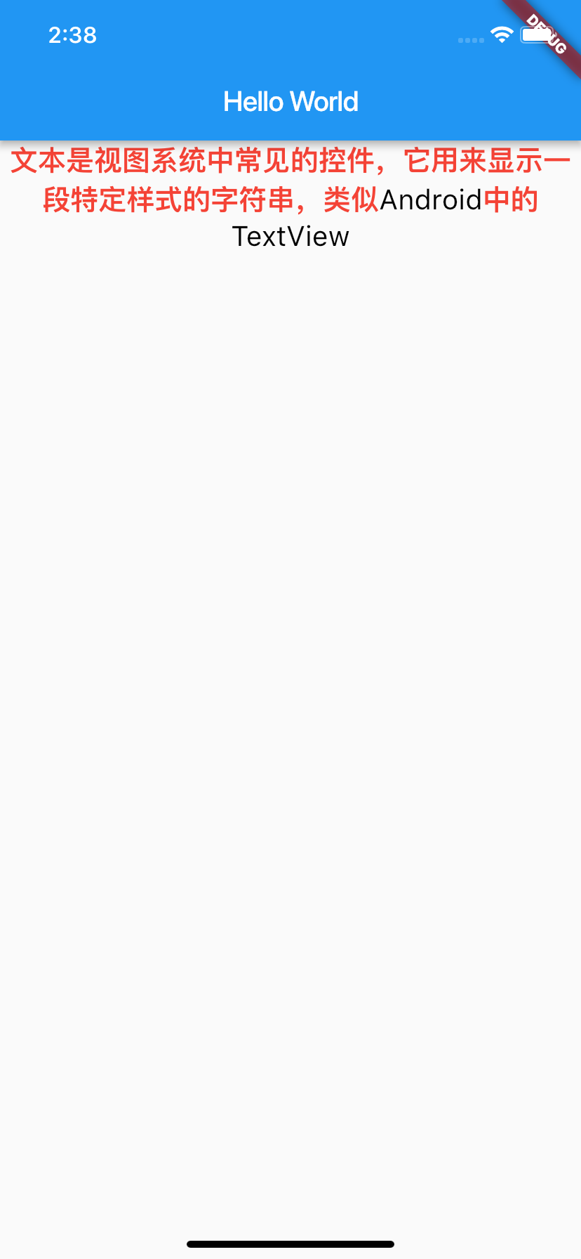 接下来,我们以一个具体的例子来看看Text控件的使用方法。如下所示,我在代码中定义了一段居中布局、20号红色粗体展示样式的字符串: