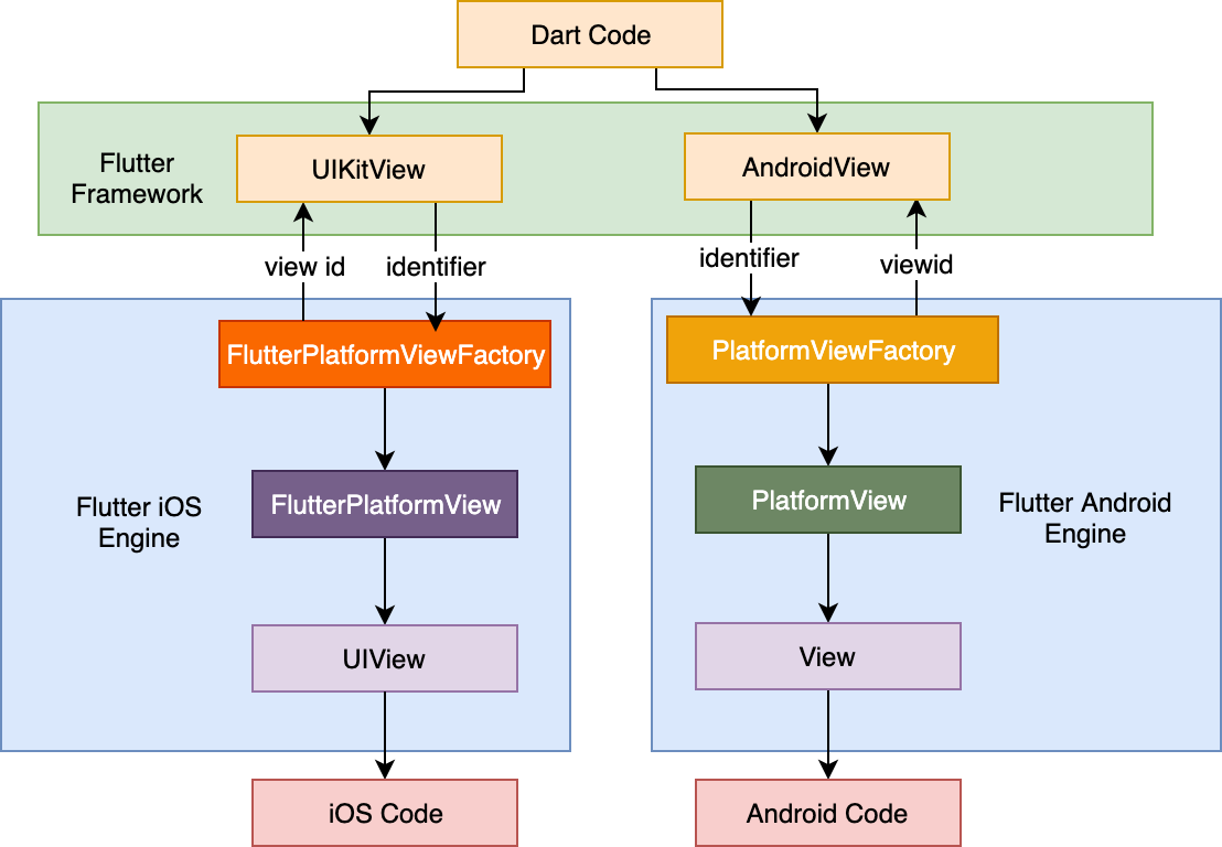 幸运的是,Flutter提供了一个平台视图(Platform View)的概念。它提供了一种方法,允许开发者在Flutter里面嵌入原生系统(Android和iOS)的视图,并加入到Flutter的渲染树中,实现与Flutter一致的交互体验。