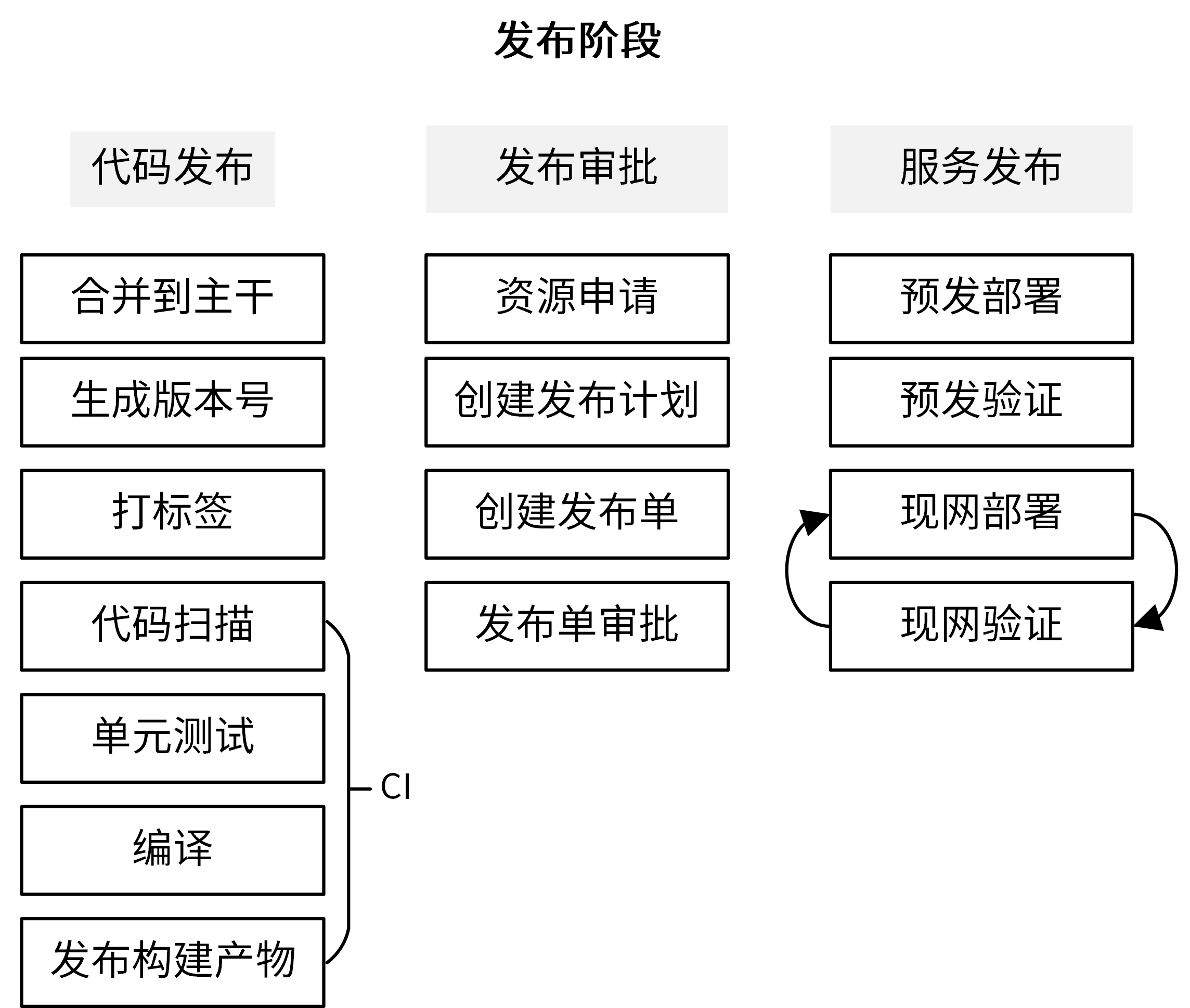 发布阶段主要是将软件部署上线,为了保证发布的效率和质量,我们需要遵循一定的发布流程,如下图所示: