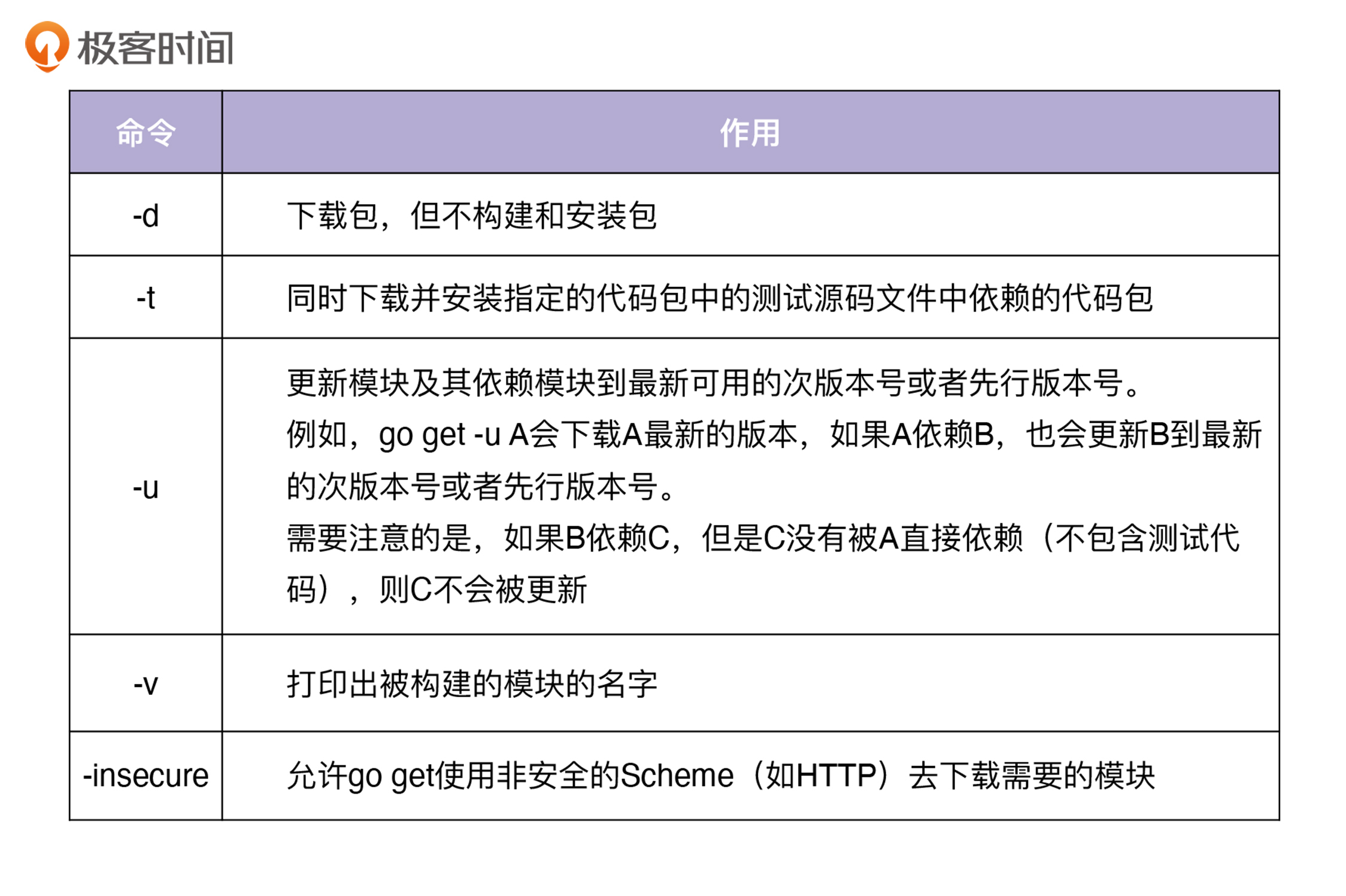 可以看到,更新到v1.3.1版本,测试是通过的。go get还支持多种参数,如下表所示: