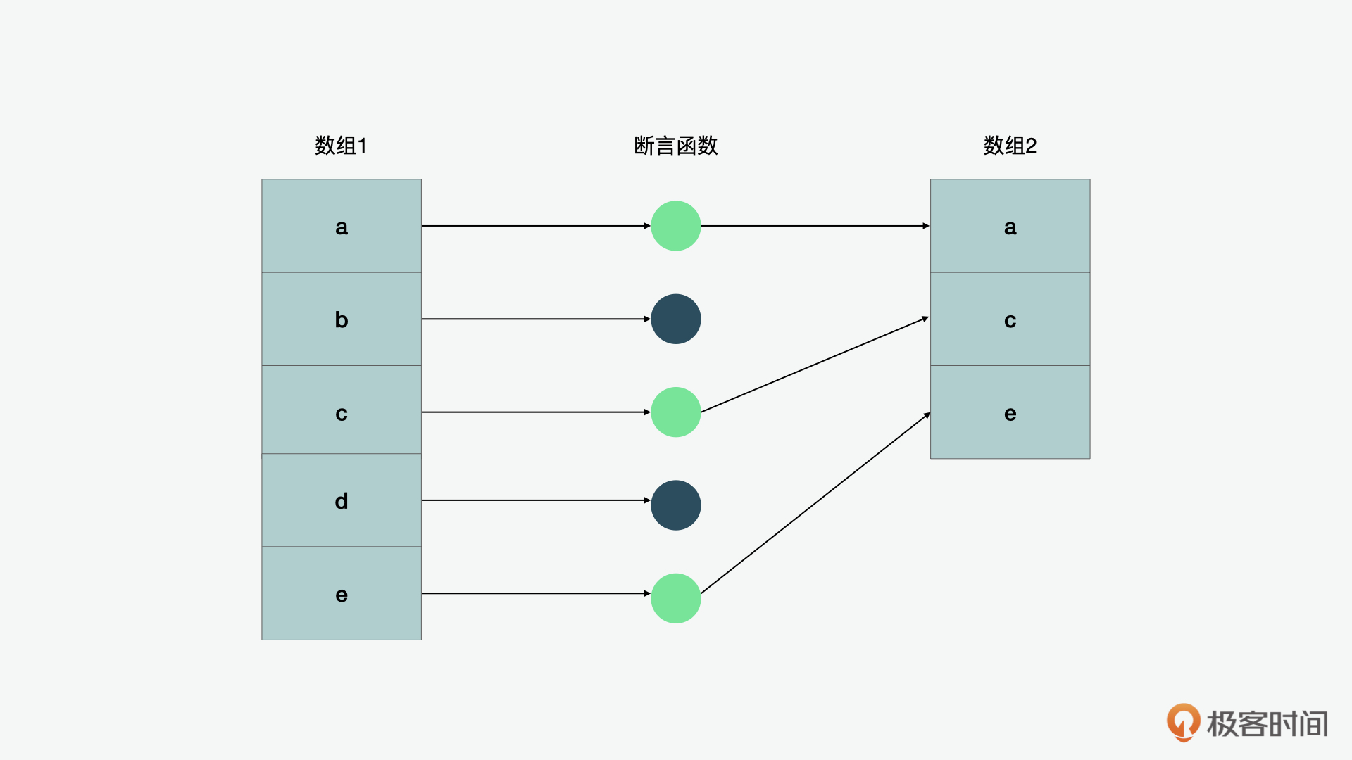 然后再来看断言。我们上节课在说到处理输入参数的工具的时候,也接触过断言,比如identity就可以看作是断言。在函数式编程中,断言就是一个个的筛选条件,所以在过滤器中,我们经常会使用断言函数。