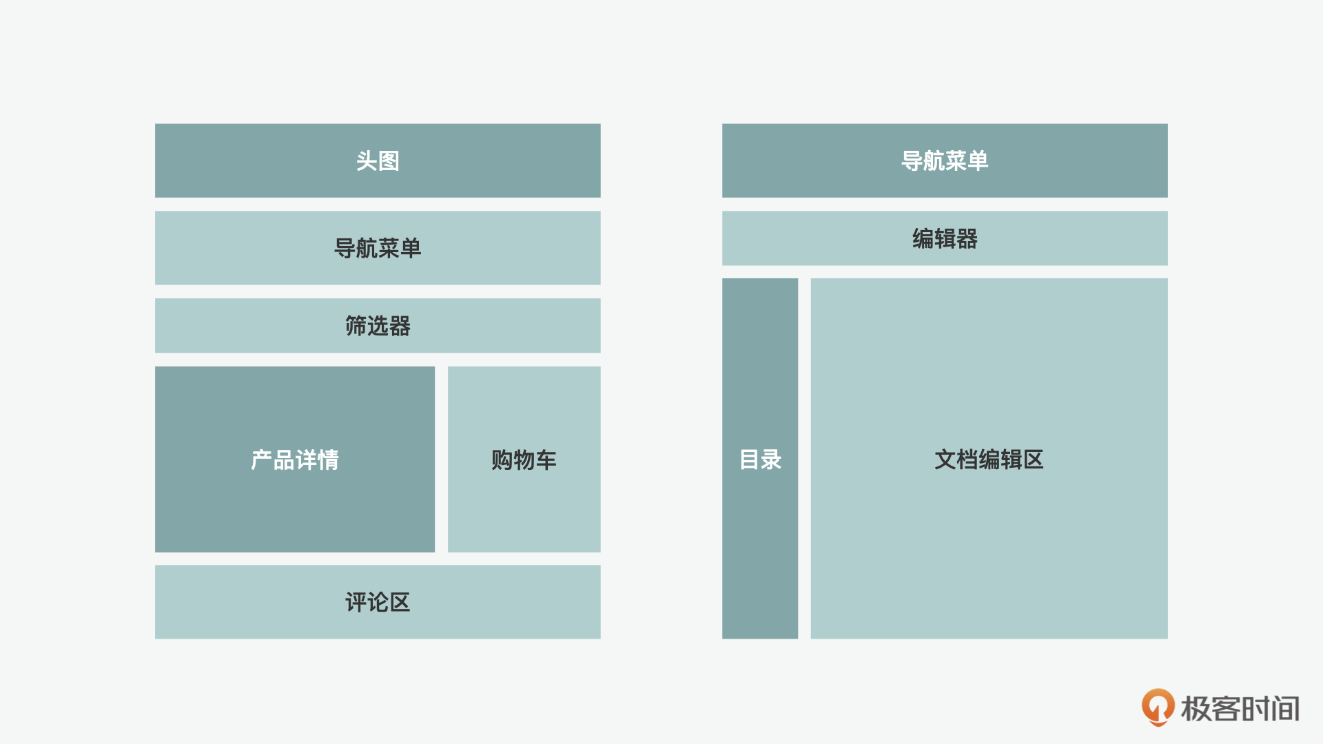 首先,我们来看下组件化的设计模式。我想请你先思考这样一个问题:为什么说组件化在前端,特别是基于JS开发的React框架中,有着非常重要的位置呢?