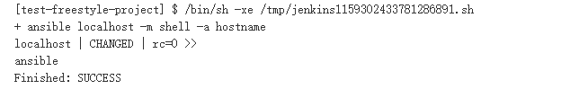 该命令用来在本机执行hostname命令。- localhost是ansible内置的一个组,表示ansible本机。