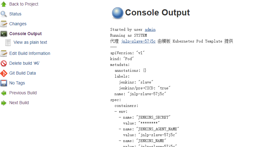 PodTemplate(….):配置的Pod模板,配置参数以及相关说明在语法章节有过介绍,不再过多赘述;不过有一点需要注意的是:containerTemplate 下的name参数和image参数的设定。