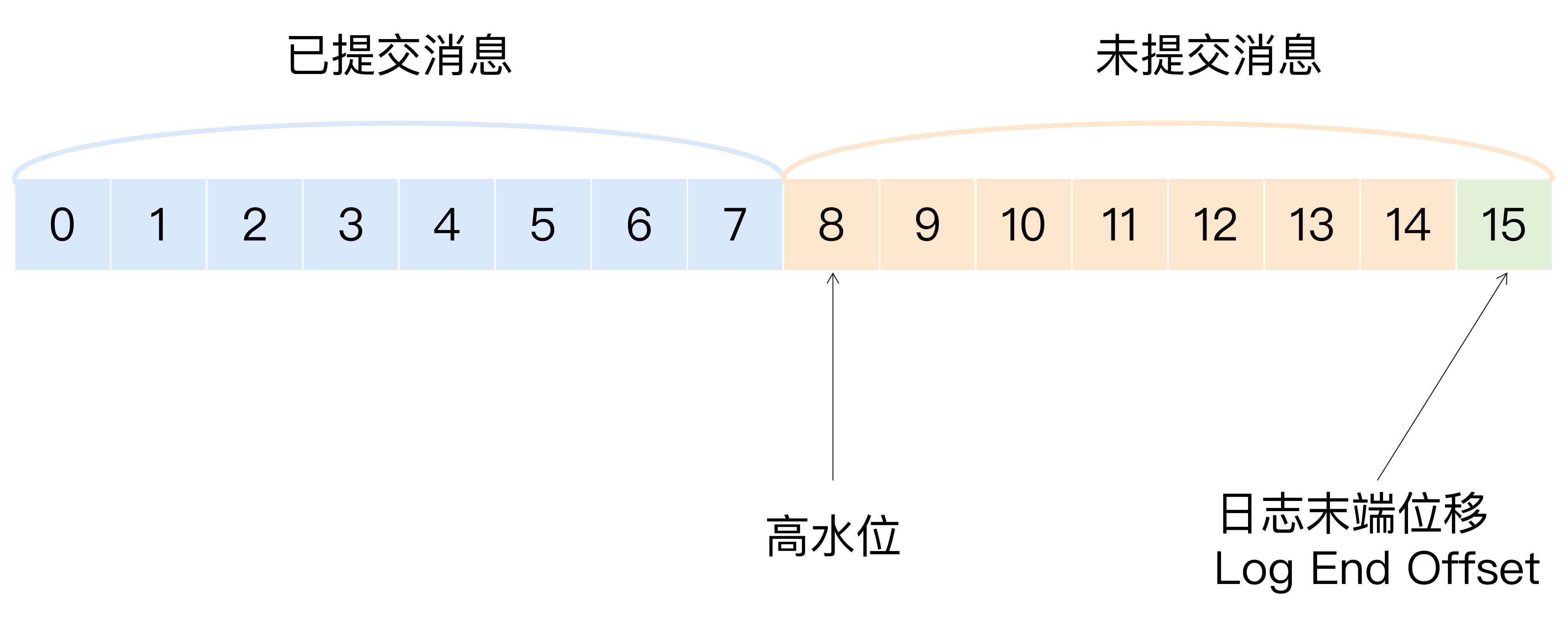 另外,需要关注的是,位移值等于高水位的消息也属于未提交消息。也就是说,高水位上的消息是不能被消费者消费的