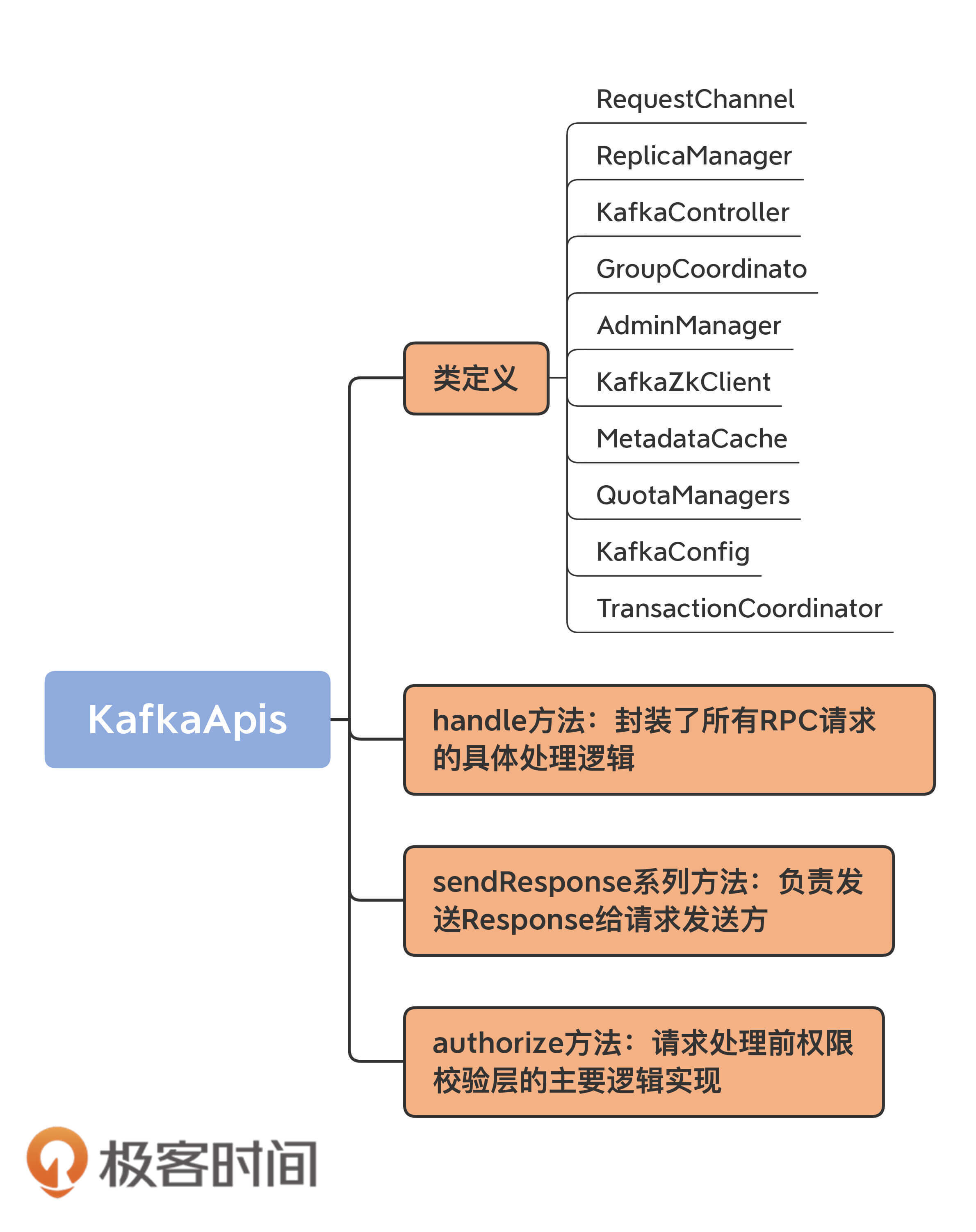 好了, 我们总结一下KafkaApis类的要点。如前所述,我们重点学习了KafkaApis类的定义及其重要方法handle。下面这些关键知识点,希望你能掌握。