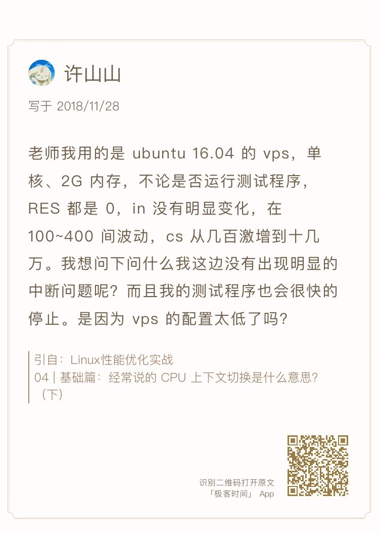 专栏更新至今,四大基础模块之一的CPU性能篇,我们就已经学完了。很开心过半数同学还没有掉队,仍然在学习、积极实践操作,并且热情地留下了大量的留言。