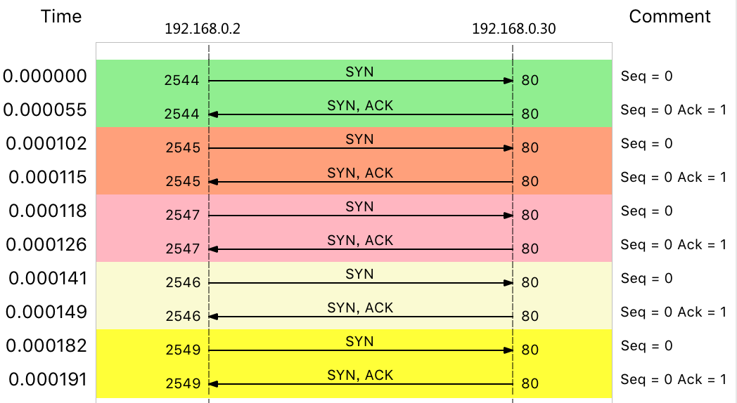 09:15:48.287055 IP 192.168.0.2.27141 > 192.168.0.30: Flags [S], seq 1276451587, win 512, length 0
