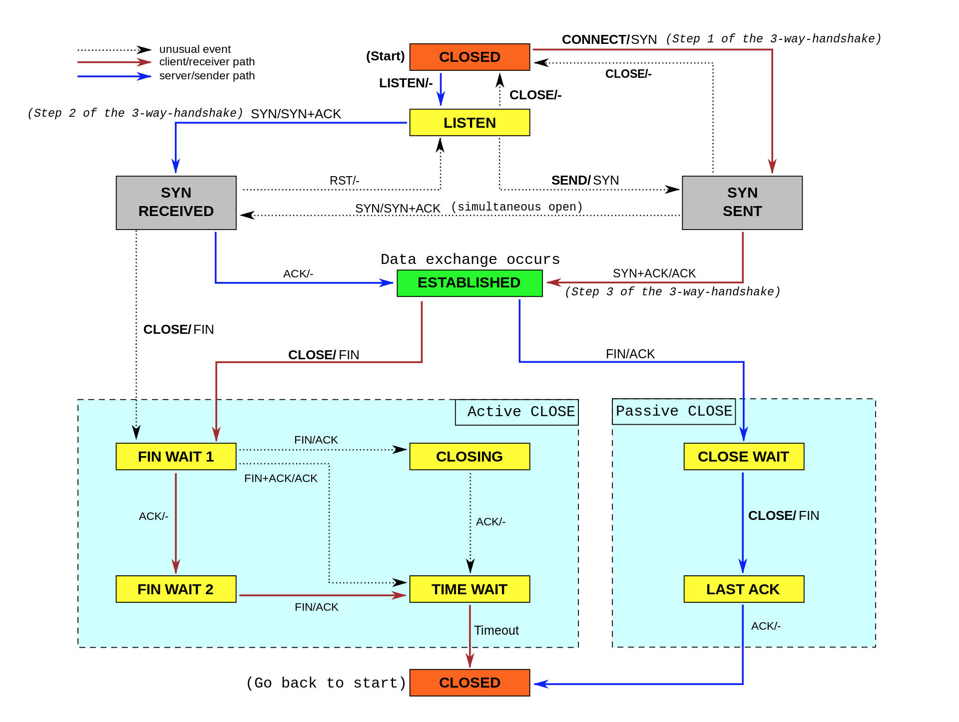 TCP 提供了面向连接的可靠传输服务。要优化 TCP,我们首先要掌握 TCP 协议的基本原理,比如流量控制、慢启动、拥塞避免、延迟确认以及状态流图(如下图所示)等。