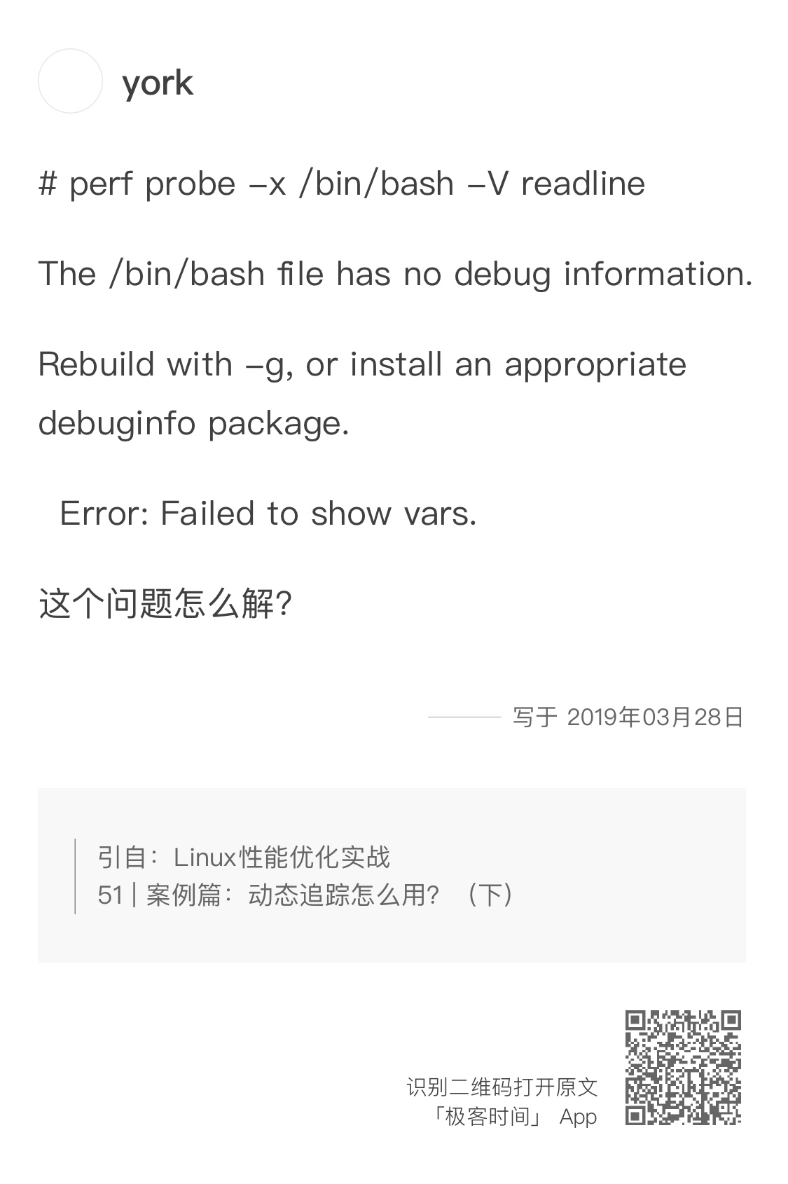 第一种方法,假如应用程序提供了调试信息软件包,那你就可以直接安装来使用。比如,对于我们案例中的 bash 来说,就可以通过下面的命令,来安装它的调试信息: