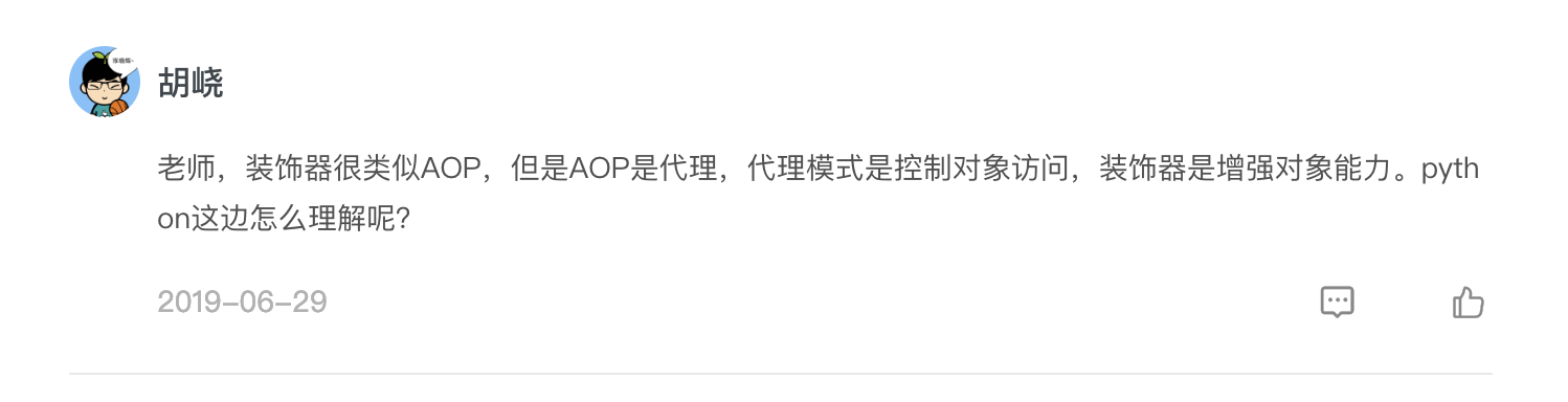 再来看第二个问题,胡峣同学对装饰器的疑问。事实上,装饰器的作用与意义,在于其可以通过自定义的函数或类,在不改变原函数的基础上,改变原函数的一些功能。
