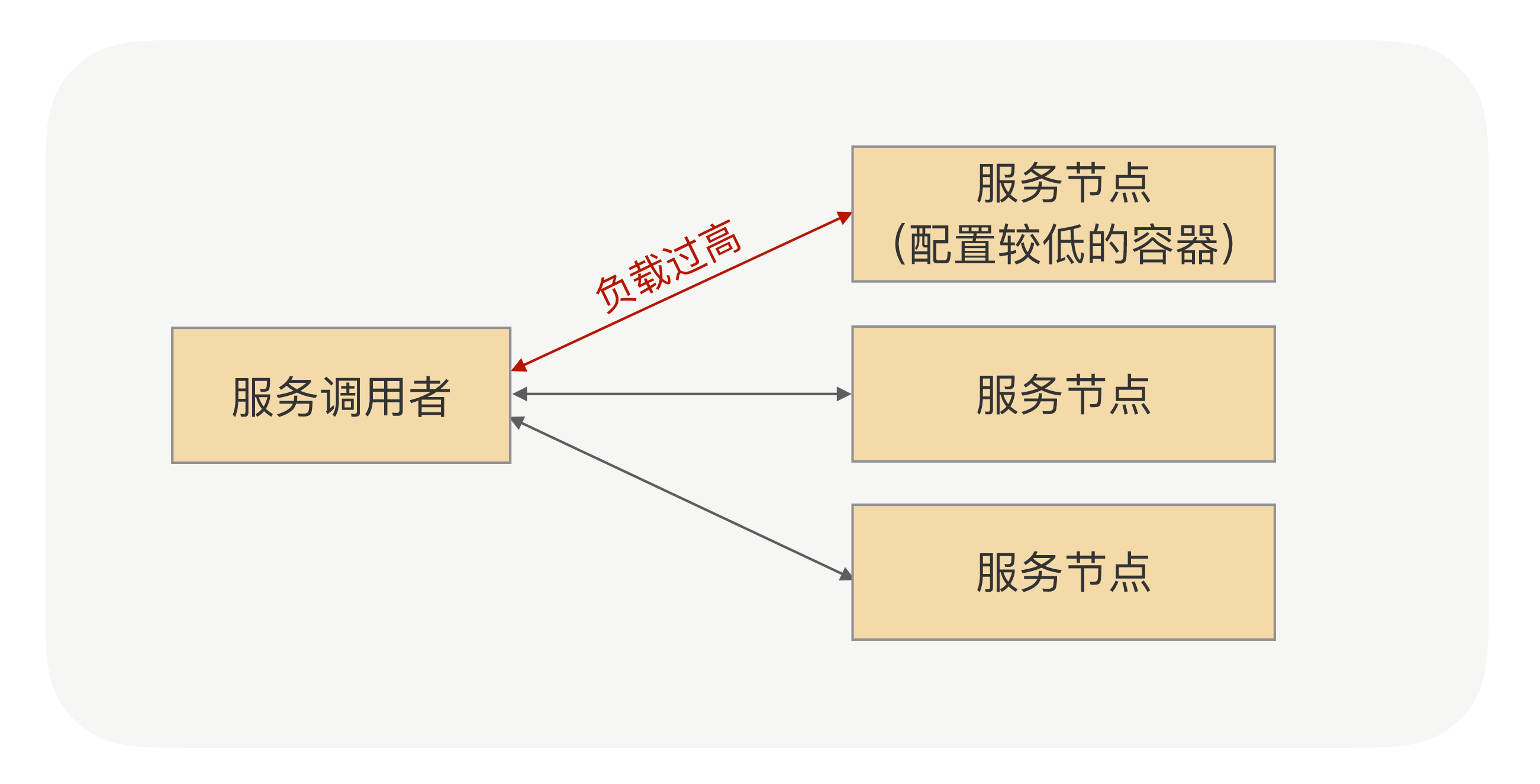 他们反馈的问题是这样的:有一次碰上流量高峰,他们突然发现线上服务的可用率降低了,经过排查发现,是因为其中有几台机器比较旧了。当时最早申请的一批容器配置比较低,缩容的时候留下了几台,当流量达到高峰时,这几台容器由于负载太高,就扛不住压力了。业务问我们有没有好的服务治理策略?