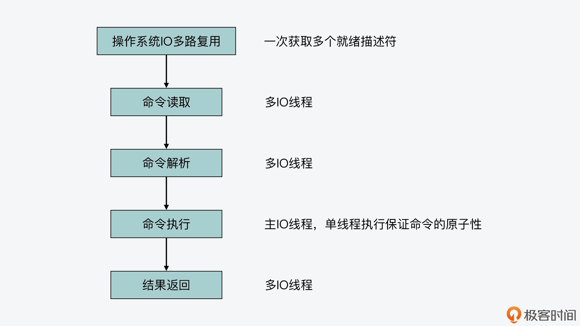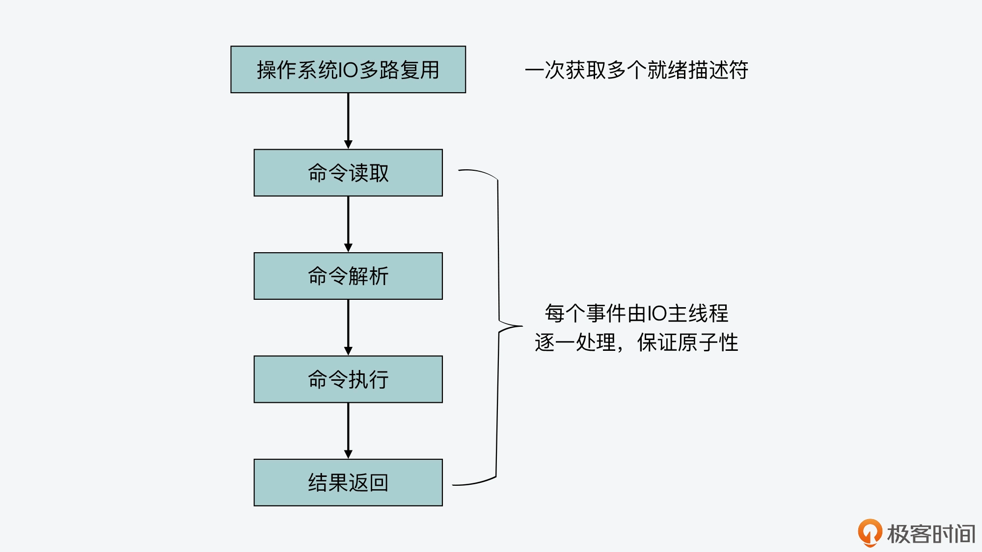 这就和 Redis 中命令的执行过程有关了。下面,我们就来了解下,一条命令在 Redis 是如何完成执行的。同时,我们还会学习到,IO 多路复用引入的多个并发客户端,以及多 IO 线程是否会破坏命令的原子性。