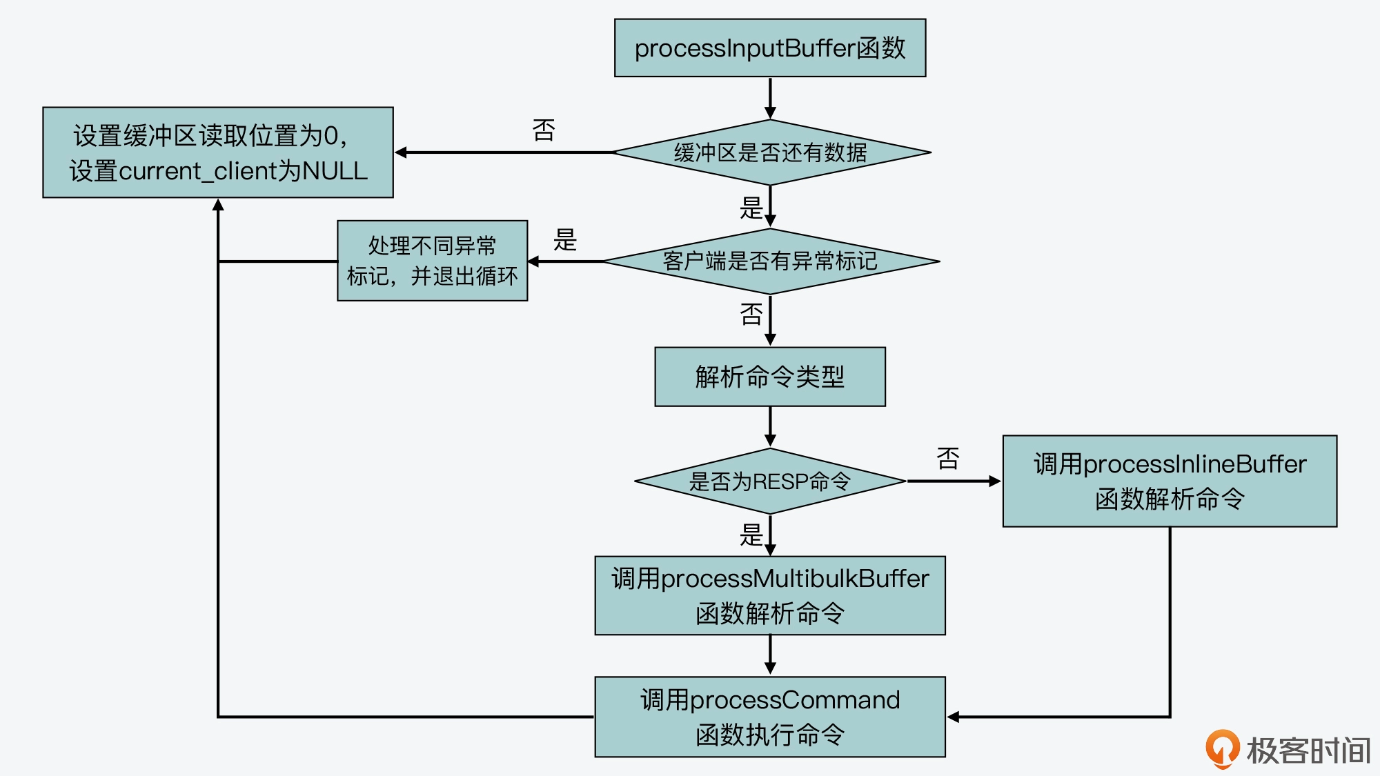 下图展示了 processInputBuffer 函数的基本执行流程,你可以再回顾下。