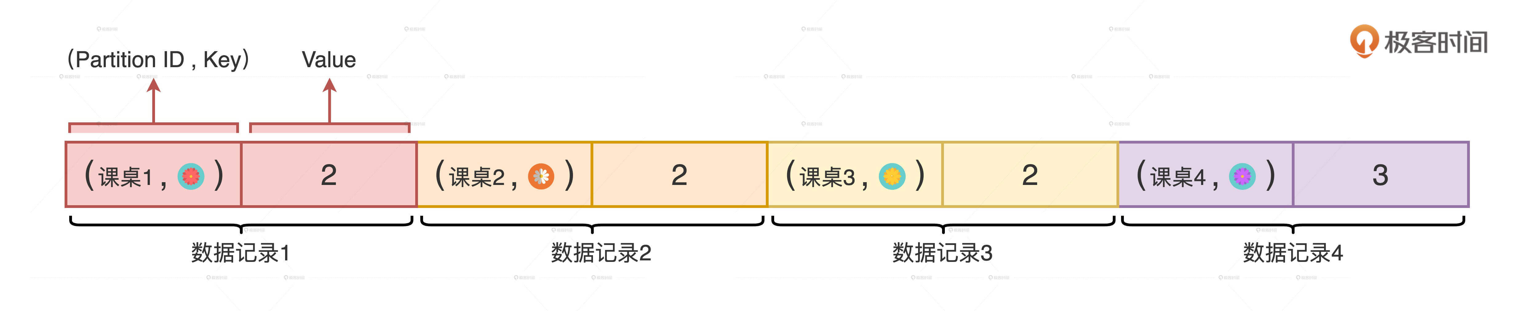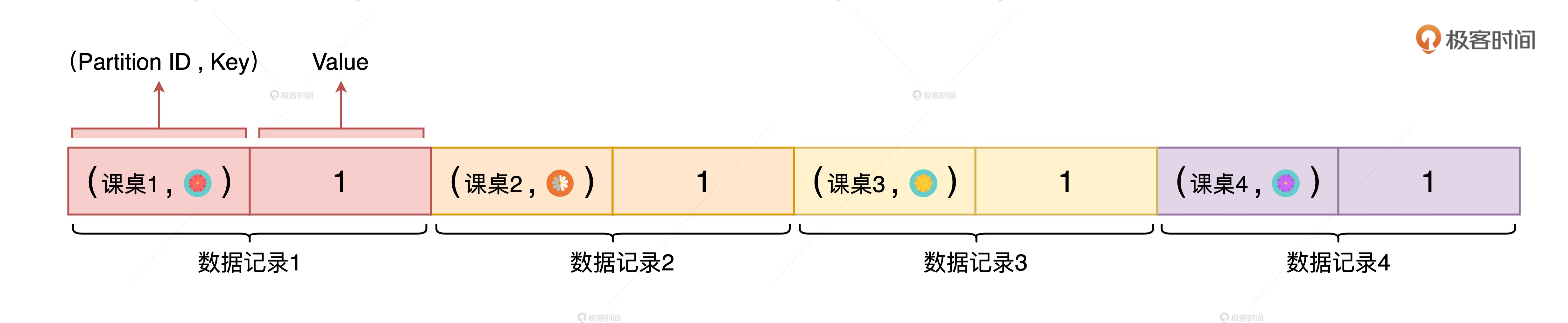 目标分区计算好之后,Map Task会把每条数据记录和它的目标分区,放到一个特殊的数据结构里,这个数据结构叫做“PartitionedPairBuffer”,它本质上就是一种数组形式的缓存结构。它是怎么存储数据记录的呢?