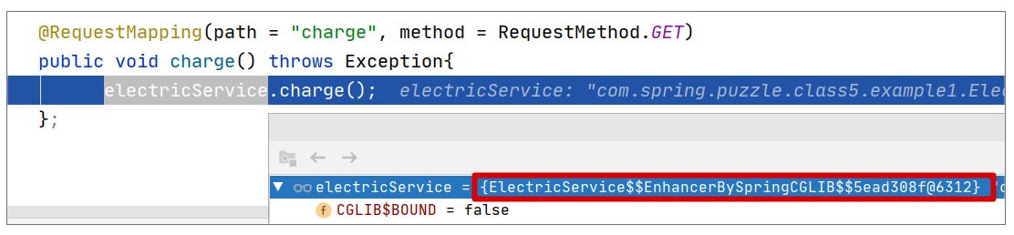 可以看到,this对应的就是一个普通的ElectricService对象,并没有什么特别的地方。再看看在Controller层中自动装配的ElectricService对象是什么样: