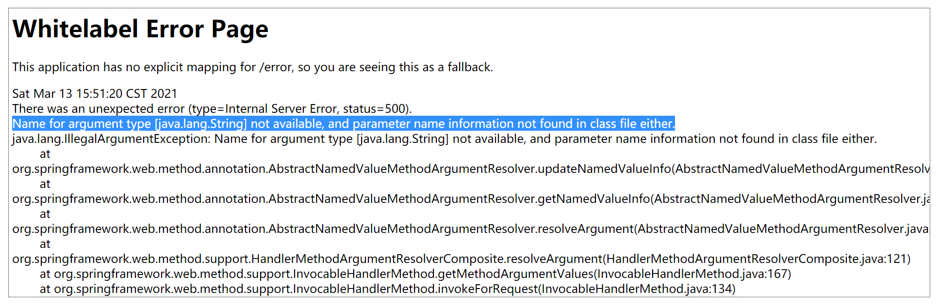 throw new ServletRequestBindingException("Missing argument '" + name +