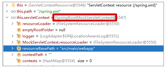 可以看出它是按 ServletContextResource 来加载的,这个资源的情况如下: