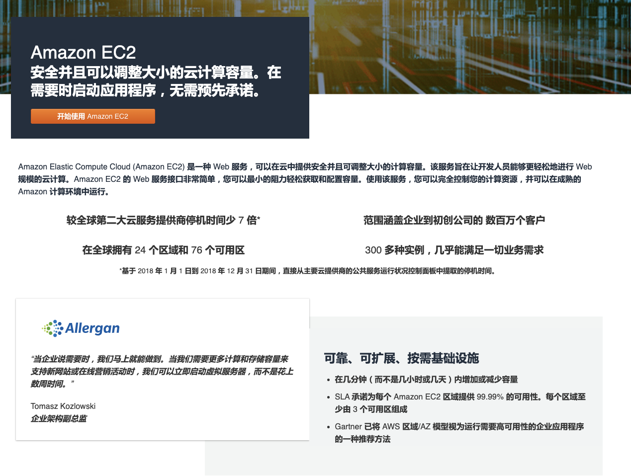 我们可以看到AWS的产品设计,就是一直走扁平化的风格,这样的风格,在产品的各个与用户接触的触点上:产品页面、实用案例、功能介绍、产品控制台。