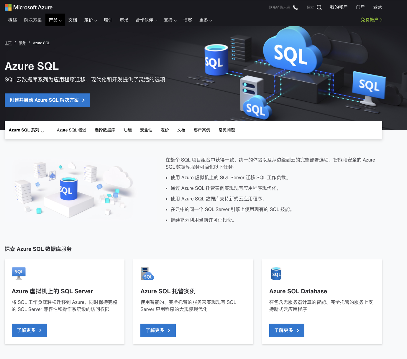 所以,栅格系统本身也是品牌整体感的一部分,我们以微软的Azure的官网为例来讲一下。下图是Azure的云服务器官网,我们会看到,上面部分是简介,下面部分是详情以及功能点,这是一个基本的布局。