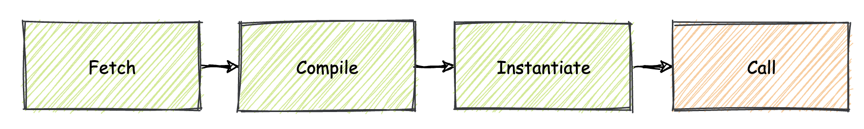 最后一步便是 “Call”。顾名思义,在这一步中,我们便可以直接通过上一阶段生成的动态 Wasm 模块对象,来调用从 Wasm 模块内导出的方法。